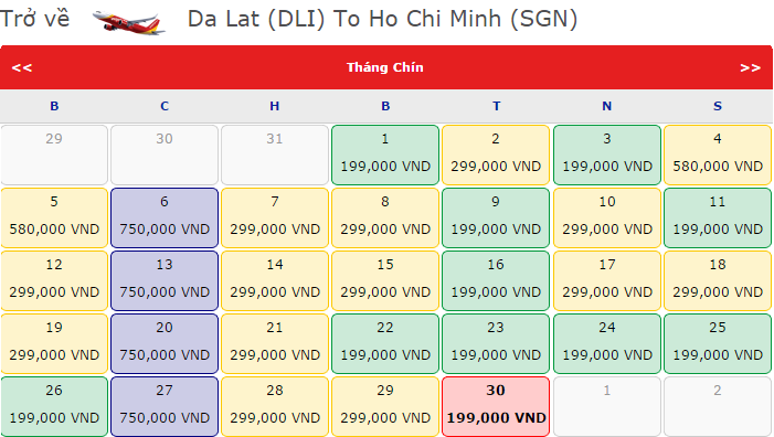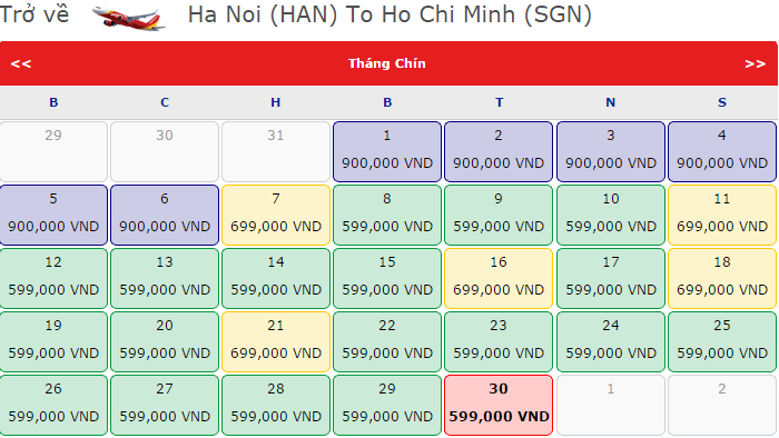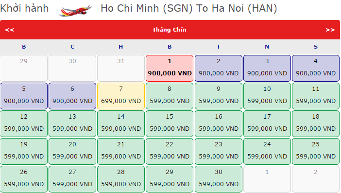 Ngược lại, vé máy bay đi TP.HCM, khởi hành từ Hà Nội, cũng được mở bán với giá chỉ từ 599.000 đồng: