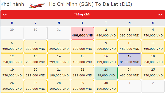 BẢNG VÉ GIÁ TỐT DỊP LỄ 2/9