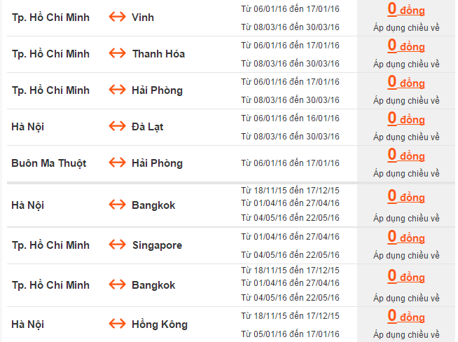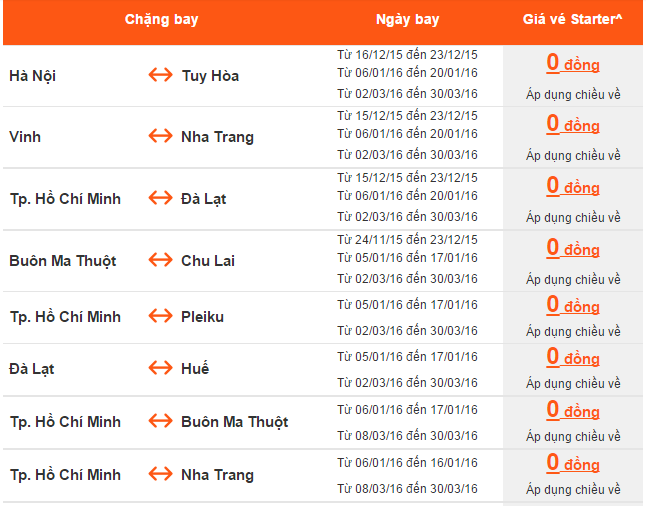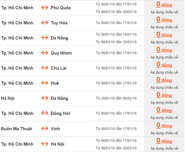 Lưu ý: Để mua được vé khuyến mại 0 đồng cho chiều về, Quý khách phải lựa chọn hành trình bay khứ hồi trong giai đoạn có khuyến mại. Khi đó giá mở bán cho chiều đi là giá bình thường trên hệ thống, giá mở bán cho chiều về được khuyến mại chỉ 0 đồng