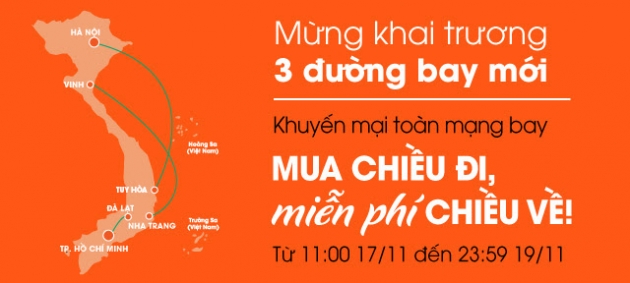 Chương trình khuyến mãi "mua chiều đi miễn phí chiều về" hãng Jetstar sẽ bắt đầu mở bán từ 11:00 Thứ Ba 17/11/2015 đến 23:59 Thứ Năm 19/11/2015. Khách hàng có nhu cầu phải liên hệ đặt vé trong thời gian sớm nhất.