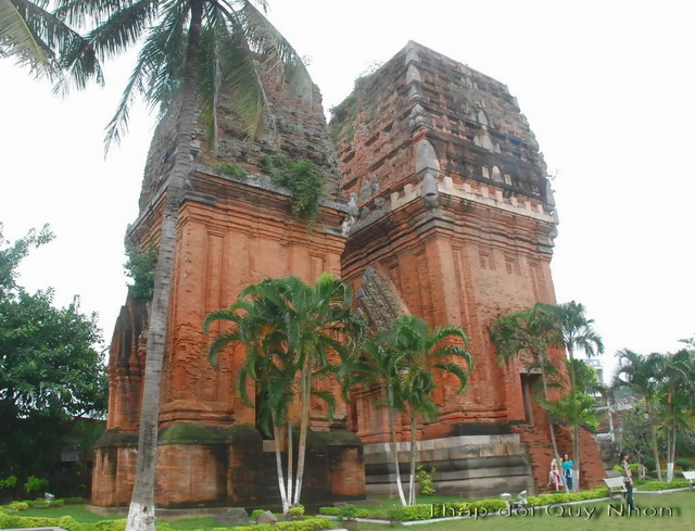 Xuất phát từ TP.Quy Nhơn bạn sẽ gặp Tháp Đôi ngay trong lòng thành phố, bên bờ đầm thị Nại. Sở dĩ gọi tên như vậy vì có hai tháp đứng cạnh nhau, tháp chính cao 20m, tháp phụ cao khoảng 18m, bên nhau sừng sững giữa trời xanh.