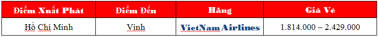 Vé máy bay đi Vinh của hãng VietNam Airlines: Mỗi ngày hãng này có 3 chuyến bay từ TPHCM đi Vinh