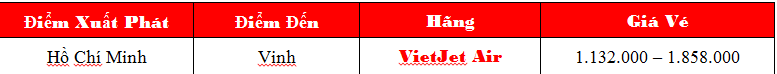 Vé máy bay đi Vinh tại thành phố Hồ Chí Minh
