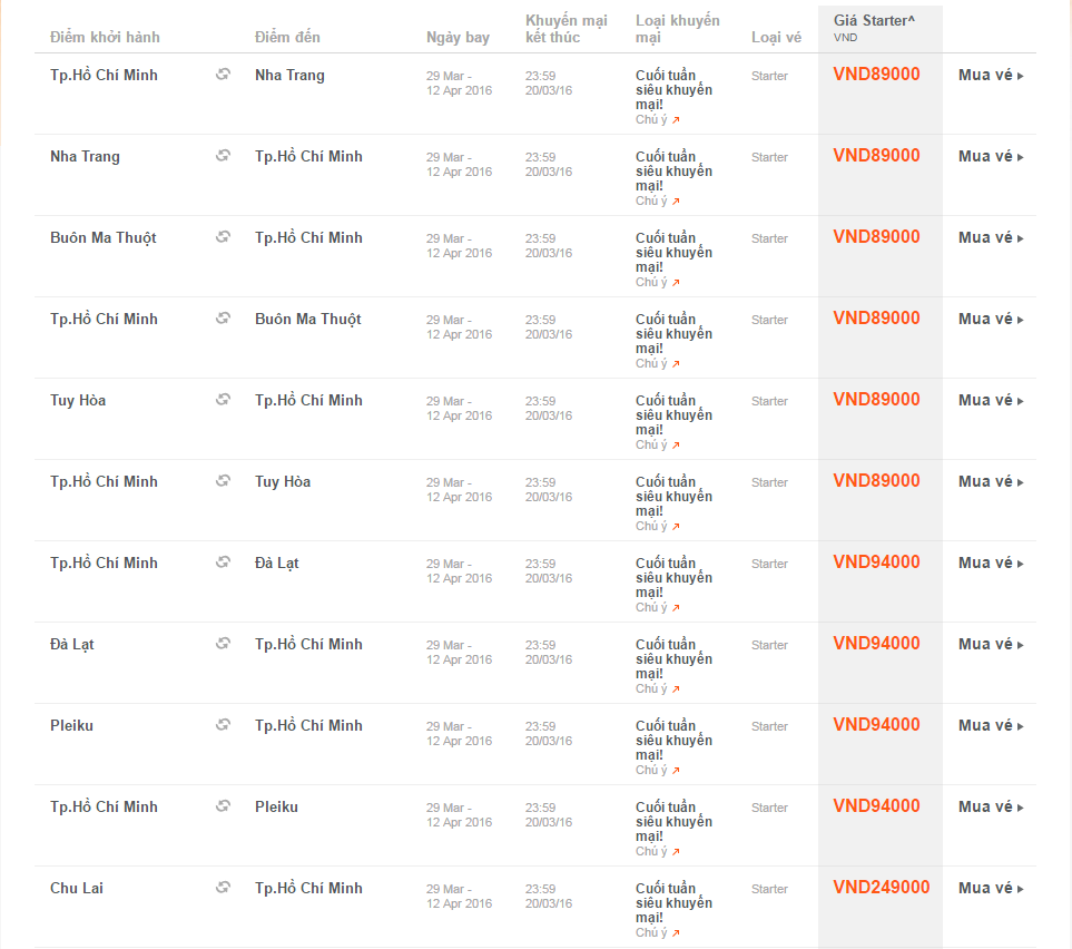 Giá vé một chiều, chưa  bao gồm thuế, phí. Giá vé phụ thuộc tình trạng chỗ của chuyến bay và chỉ mở bán  cho một số chuyến bay và ngày bay. Vé không được hoàn, hạn chế thay đổi, nếu thay đổi phải đóng phí.  Không bao gồm Hành lý ký gửi. Các tiêu chuẩn về trọng lượng và kích thước của Hành lý xách tay sẽ được áp dụng. Hành khách mang Hành lý xách tay không đúng với quy định sẽ phải làm thủ tục ký gửi và phải đóng phí.