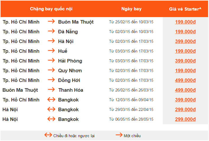 Giá vé một chiều, chưa  bao gồmthuế, phí. Giá vé phụ thuộc tình trạng chỗ của chuyến bay và chỉ mở bán  cho một số chuyến bay và ngày bay. Vé không được hoàn, hạn chế thay đổi, nếu thay đổi phải đóng phí. Không bao gồm Hành lý ký gửi. Các tiêu chuẩn về trọng lượng và kích thước của Hành lý xách tay sẽ được áp dụng. Hành khách mang Hành lý xách tay không đúng với quy định sẽ phải làm thủ tục ký gửi và phải đóng phí.