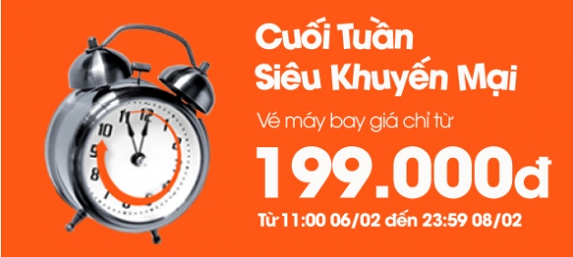 Chương trình Cuối tuần, siêu khuyến mại bắt đầu từ 11:00, Thứ 6 ngày 06/02/2015 và kết thúc vào 23:59, Chủ nhật ngày 08/02/2015. Hãy nhanh tay mua ngay vé rẻ trước khi vé được bán hết.