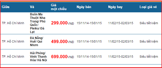 Chương trình khuyến mãi được mở bán từ ngày 15/11/2014 và kết thúc vào tháng 05/01/2015 (dương lịch). Ngày khởi hành bắt đầu từ 11/02/2015 đến 02/03/2015.