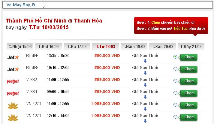 Hành trình: HCM_THANHHOA trong tháng 3