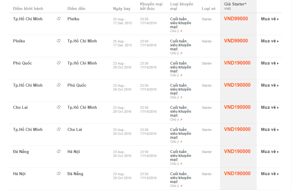 Jetstar Pacific tiếp tục tọa nên những bất ngờ lớn cho khách hàng khi triển khai khuyến mãi cực sốc trong chương trình CUỐI TUẦN SIÊU KHUYẾN MÃI. Cùng đón chờ những bất ngờ từ Jetstar để có cho mình hành trình thật hấp dẫn và tiết kiệm các bạn nhé! Nhanh tay Hãy chuẩn bị cho mình một đường truyền internet tốc độ cao, máy tính cấu hình tốt và 01 tấm thẻ tín dụng rủng rỉnh tiền để chuẩn bị cho hành trình săn vé khuyến mại JETSTA PACIFIS chỉ 99.000đ!!!! VÀ CÙNG NHIỀU HÀNH TRÌNH GIÁ RẺ KHÁC!!