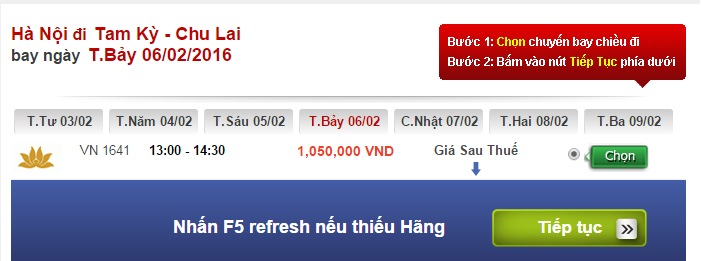 Ngày 06/02 (tức ngày 28 âm lịch) hãng hàng không Vietnam Airlines đưa ra giá vé 1.050.000 đồng cho chuyến bay lúc 14h, chuyến bay duy nhất trong ngày.
