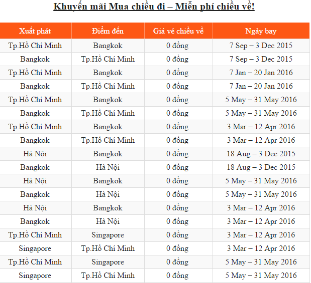 - Vé 0 ĐỒNG chỉ xuất hiện khi bạn chọn đặt vé cho hành trình khứ hồi.