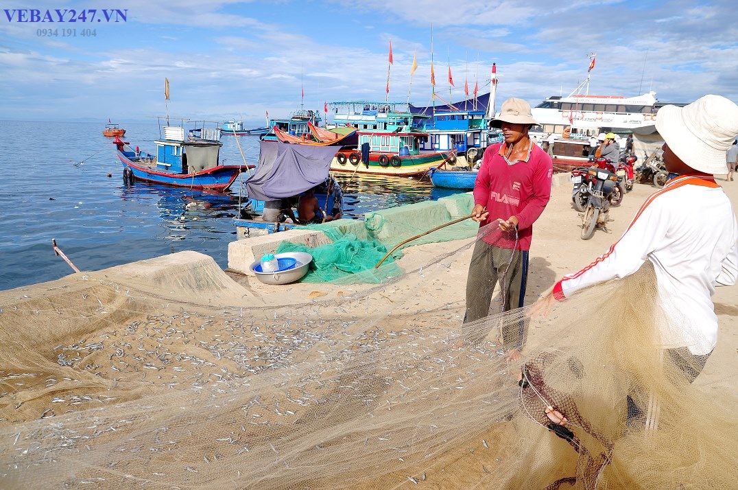 NGẮM LÀNG CHÀI LÝ SƠN MỘT SỚM BÌNH MINH Mặt trời lên, quả cầu hồng bỗng bừng sáng rực rỡ soi bóng những chiếc thuyền câu bé nhỏ. Từng đoàn thuyền về, nặng trĩu cá, nồng vị biển và chói lóa màu bình minh. Đứng từ một mỏm đá nào gần đó đều có thể nghe được mùi tươi nồng của hải sản, nghe được tiếng cười đùa kéo lưới và những đôi vai trần đội cả thúng cá thật to.