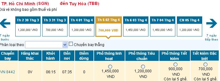 Hiện có vé máy bay từ Hồ Chí Minh đi Tuy Hòa trong tháng 4 giá rẻ.