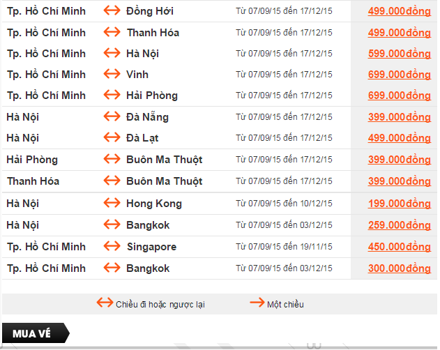 Giá vé một chiều, chưa  bao gồm thuế, phí. Giá vé phụ thuộc tình trạng chỗ của chuyến bay và chỉ mở bán  cho một số chuyến bay và ngày bay. Vé không được hoàn, hạn chế thay đổi, nếu thay đổi phải đóng phí.  Không bao gồm Hành lý ký gửi. Các tiêu chuẩn về trọng lượng và kích thước của Hành lý xách tay sẽ được áp dụng. Hành khách mang Hành lý xách tay không đúng với quy định sẽ phải làm thủ tục ký gửi và phải đóng phí.