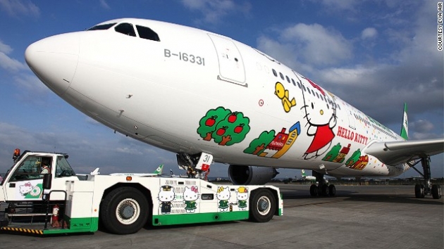 Chiếc máy bay Hello Kitty đã vươn tới mọi ngóc ngách của thị trường hàng hóa ở châu Á, và đạt đến một giới hạn nhất định, chúng ta sẽ biết được rằng những máy bay mang thương hiệu con mèo hoạt hình này cũng có thể bay tới cả phương Tây.