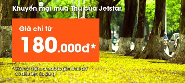 Chương trình khuyến mại Mùa Thu của Jetstar sẽ bắt đầu từ 14:00 Thứ sáu 05/9/2014 đến 23:59 Chủ nhật ngày 07/9/2014. Hãy nhanh tay mua ngay giá rẻ trước khi vé được bán hết!