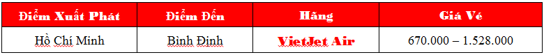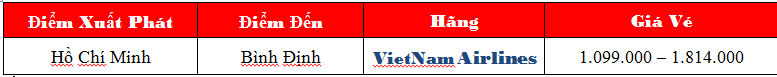 Vé máy bay đi Bình Định tại TP. Hồ Chí Minh