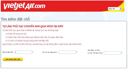 Hệ thống làm thủ tục trực tuyến của VietjetAir không áp dụng cho các trường hợp: