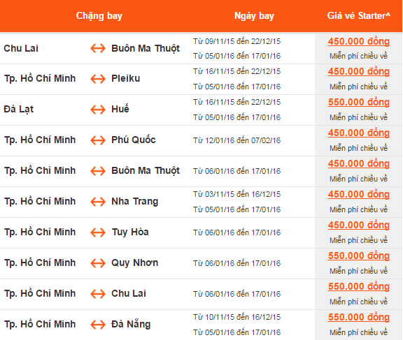 Giá vé một chiều, chưa bao gồm thuế, phí. Giá vé phụ thuộc tình trạng chỗ của chuyến bay và chỉ mở bán cho một số chuyến bay và ngày bay. Vé không được hoàn, hạn chế thay đổi, nếu thay đổi phải đóng phí. Không bao gồm Hành lý ký gửi. Các tiêu chuẩn về trọng lượng và kích thước của Hành lý xách tay sẽ được áp dụng. Hành khách mang Hành lý xách tay không đúng với quy định sẽ phải làm thủ tục ký gửi và phải đóng phí.