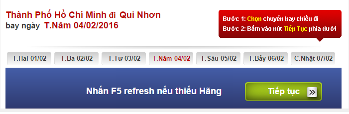 Truy cập website: http://vebay247.vn/ lựa chọn hành trình và khung thời gian bay ưng ý và tiến hành các thao tác đặt vé máy bay như thông thường.