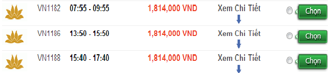 Vé máy bay từ Hồ Chí Minh đi Hải Phòng của VietNam Airlines với tần xuất 3 chuyến một ngày với giờ bay khác nhau.