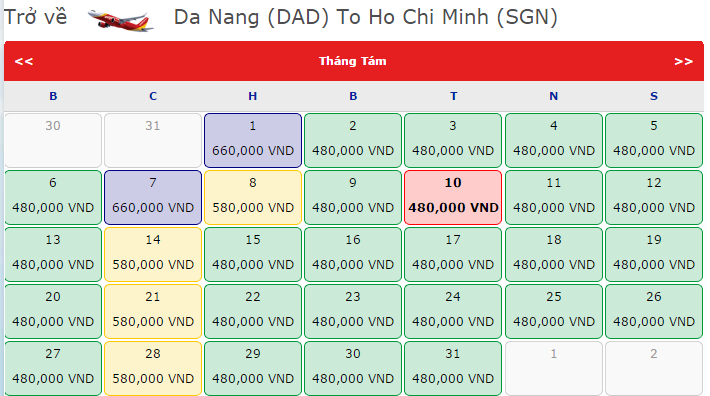Theo lời khuyên của Vegiasoc.com, nếu chuyến đi tới Đà Nẵng chỉ đơn thuần là du lịch thì bạn nên linh hoạt ngày bay để lựa chọn những ngày có vé rẻ. Hiện giá vé khứ hồi chặng ngược lại rẻ nhất là 480.000đ. Tham khảo giá vé khứ hồi tại đây:
