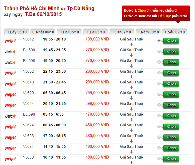 Lưu ý: Đây là giá vé 1 chiều, chưa bao gồm thuế phí.
